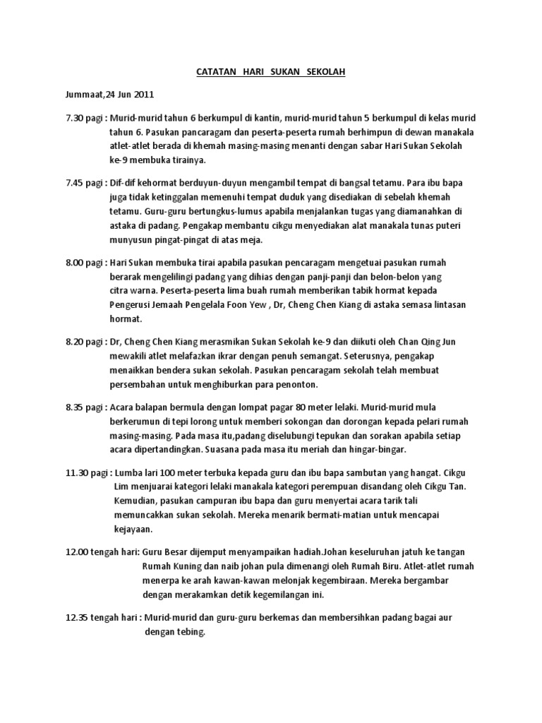 Catatan Hari Sukan Sekolah Pdf